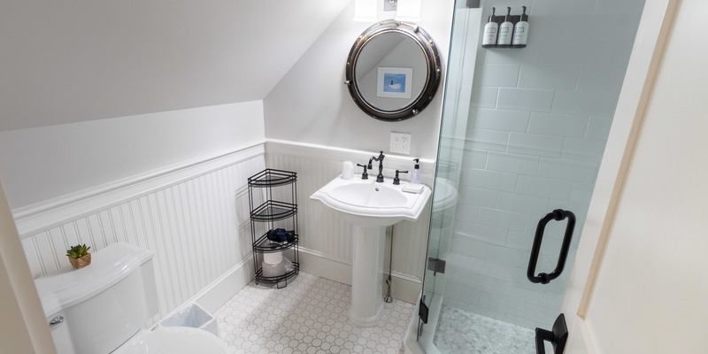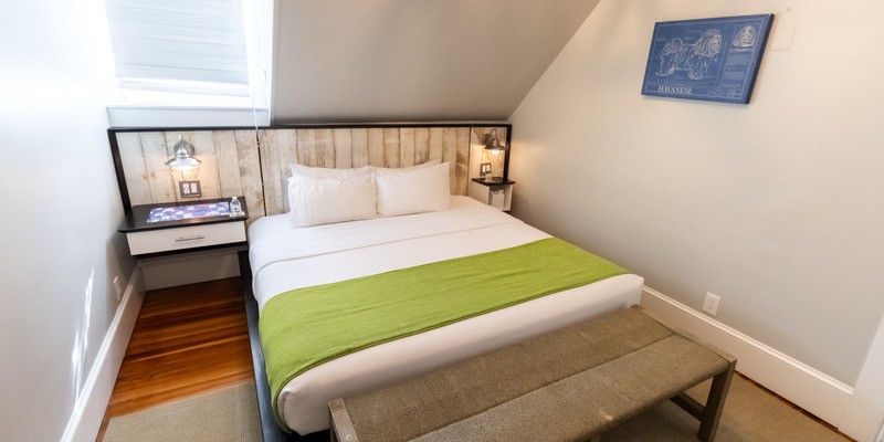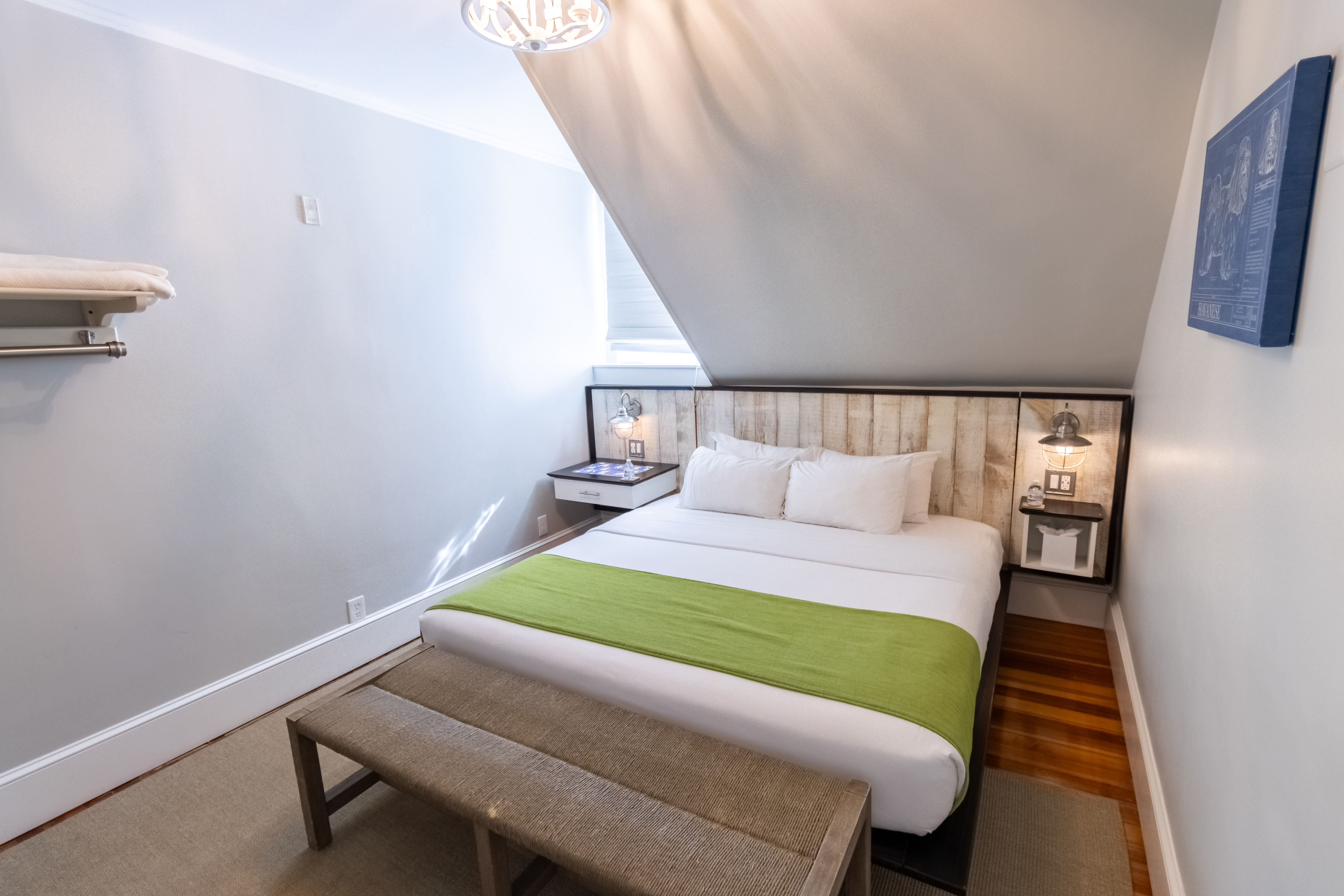Room 13 is inviting with a built-in king-size bed and an en-suite bathroom. Room 13 is located on the third floor of the Inn.